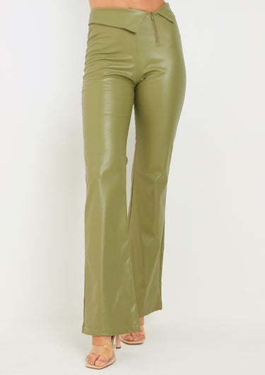 Marlowe Green Fold Over Faux Leather Flare Trouser