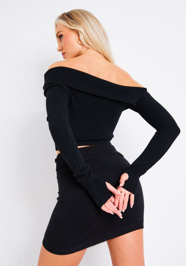 Rayne Black Knitted Long Sleeve Asymmetric Top