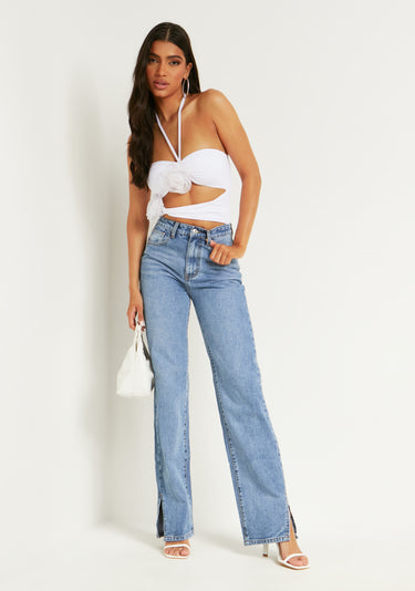 Clarissa White Flower Corsage Halter Bodysuit