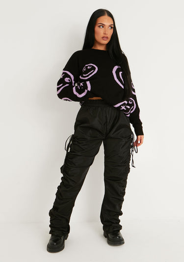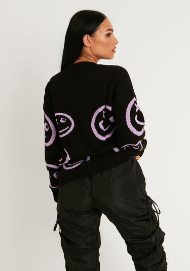 Black And Lilac Oversized Smiley Face Knitted Jumper
