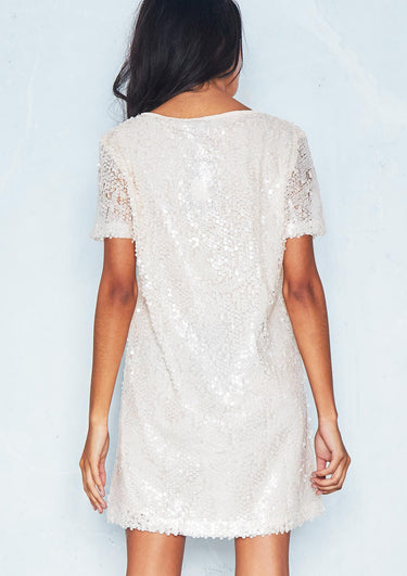 Shine all night long in the Dana Cream Embellished Shift Dress. Featuring a sassy sequin embellishment and sassy fit. Style with heels and clutch bag for a smoking hot finish.