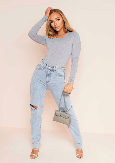 Give your look a subtle edge this season with our Elena Grey Basic Jersey Crew Neck Bodysuit. Featuring long sleeves, crew neck and popper fastening.