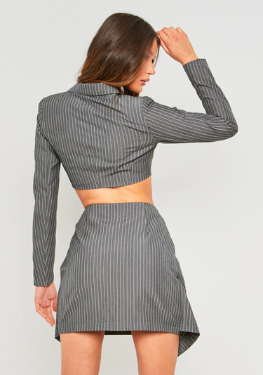 Kayla Charcoal Striped Tailored Cropped Blazer