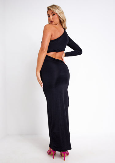 Ria Black One Shoulder Rope Detail Maxi Dress