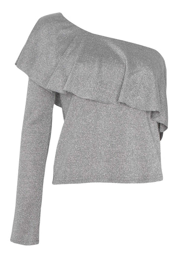 Get your shoulder out in our Brisa Grey Lurex Frill Top this cool AF top is centre of attention ready with a metallic finish and frill detail youll be the best dressed anywhere you go.