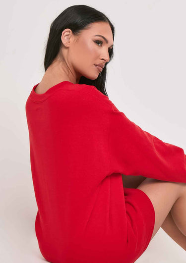 Santa Baby... Our Ruby Red 'Santa's Sidechick' Candy Cane Sweatshirt features a slogan, finished in an oversized red material.