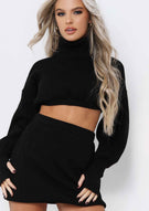 The category is: comfortable. Our Zara Black Knitted Mini Skirt Co-ord features a black knitted material, finished in a mini length. Pair with our matching cropped jumper.